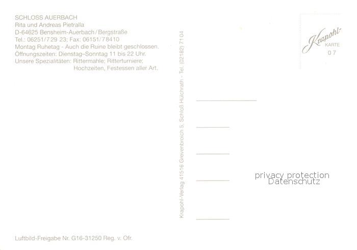 73203441 Auerbach Bergstrasse Schloss Auerbach Fliegeraufnahme postalisch nicht gelaufen Erhaltung siehe scans [FriedD77] KatCode: 11110006431002