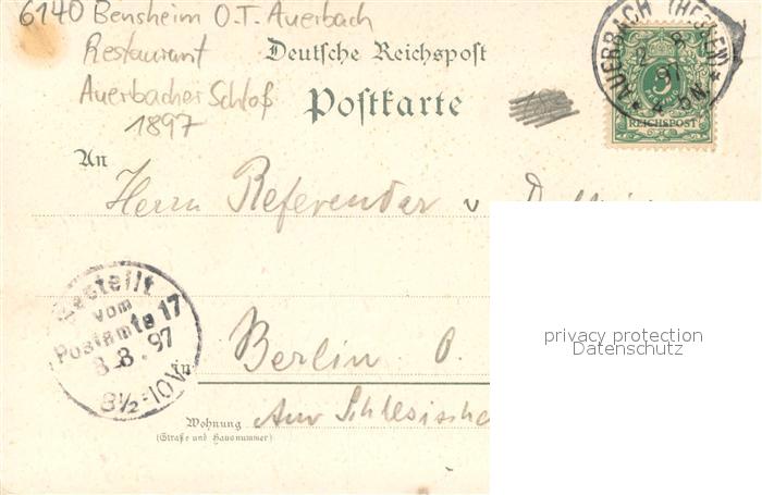 73750322 alte Postkarte Auerbach Bergstrasse Schloss Auerbach Inneres Restaurant Auerbacher Schloss Schoenberg Fuerstenlager postalisch gelaufen Erhaltung siehe scans [WerneD78] KatCode: 11110006431002