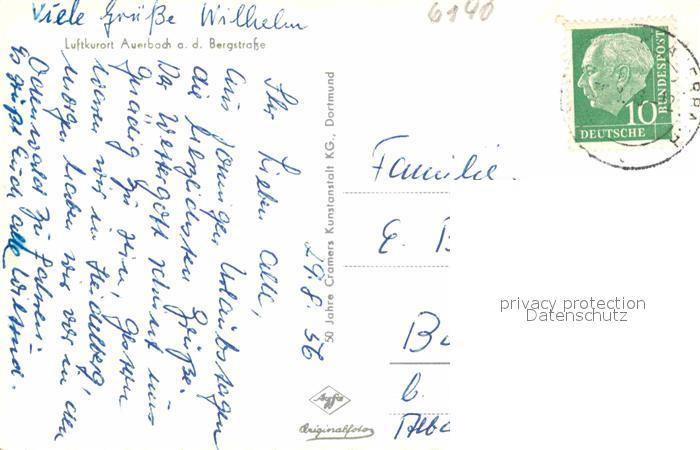 72863828 alte Postkarte Auerbach Bergstrasse Teilansicht Burg postalisch gelaufen Erhaltung siehe scans [WerneD78] KatCode: 11110006431002