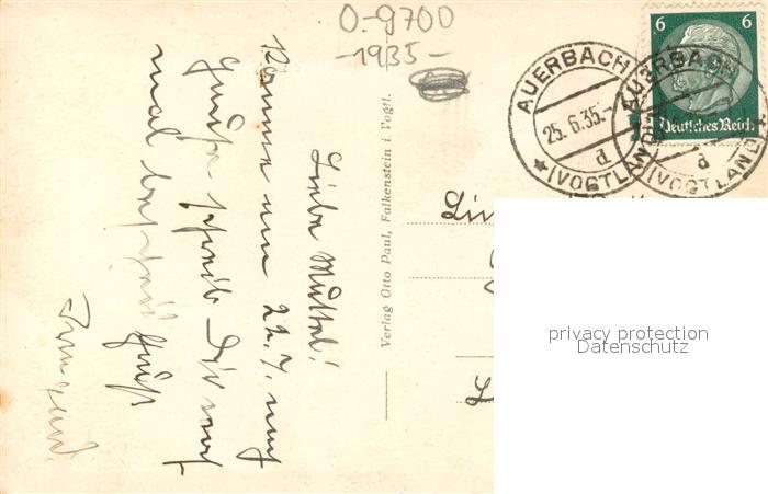 73698752 alte Postkarte Auerbach Vogtland Die drei Wahrzeichen Teilansicht postalisch gelaufen Erhaltung siehe scans [LiesaD40] KatCode: 11110014178030