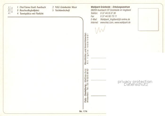73232499 Auerbach Vogtland Drei Tuerme Tennisplatz Teichlandschaft Waldpark Gruenheide postalisch nicht gelaufen Erhaltung siehe scans [KathaD81] KatCode: 11110014178030