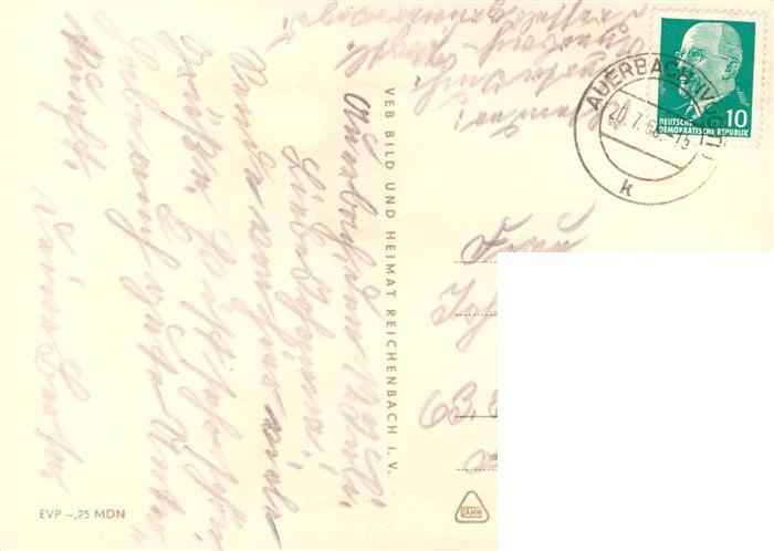 73879609 alte Postkarte Auerbach Vogtland Drei Wahrzeichen Schwimmbad Karl Marx Platz Institut fuer Lehrerbildung Panorama postalisch gelaufen Erhaltung siehe scans [FriedD77] KatCode: 11110014178030