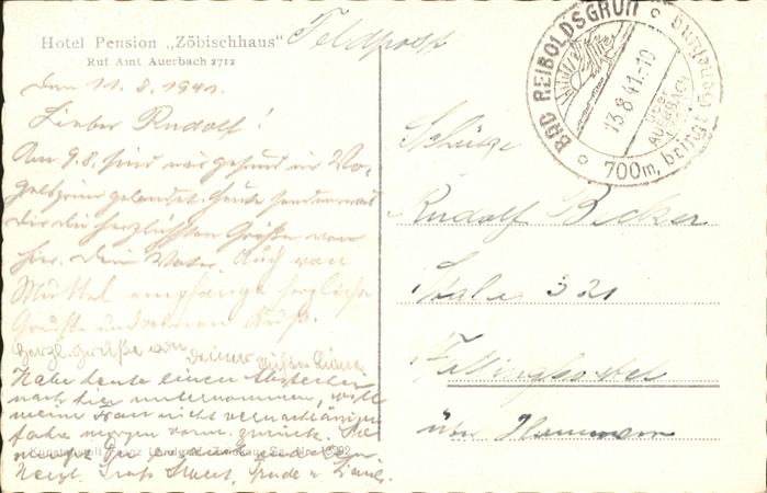 Auerbach Vogtland Feldpost Hotel Pension Zöbischhaus