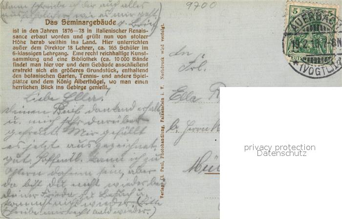 43057645 alte Postkarte Auerbach Vogtland Lehrerseminar postalisch gelaufen Erhaltung siehe scans [KathaD81] KatCode: 11110014178030