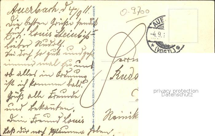 42265528 alte Postkarte Auerbach Vogtland Park Anlagen Springbrunnen Kirche Schloss Turm postalisch gelaufen Erhaltung siehe scans KatCode: 11110014178030
