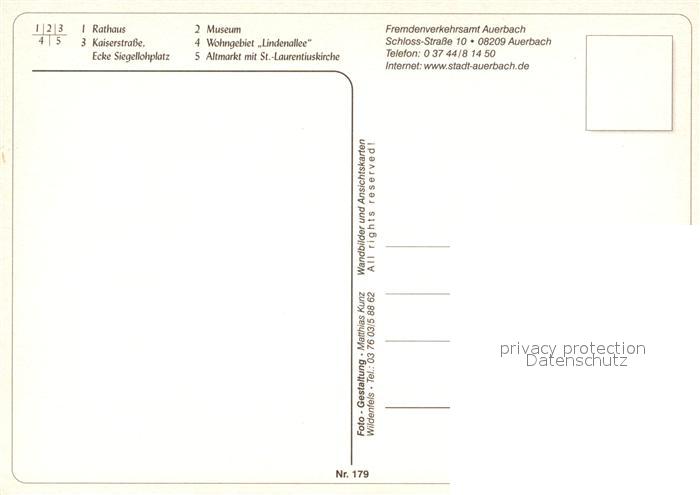 73232500 Auerbach Vogtland Rathaus Kaiserstrasse Museum Lindenallee Altmarkt Laurentiuskirche postalisch nicht gelaufen Erhaltung siehe scans [KathaD81] KatCode: 11110014178030
