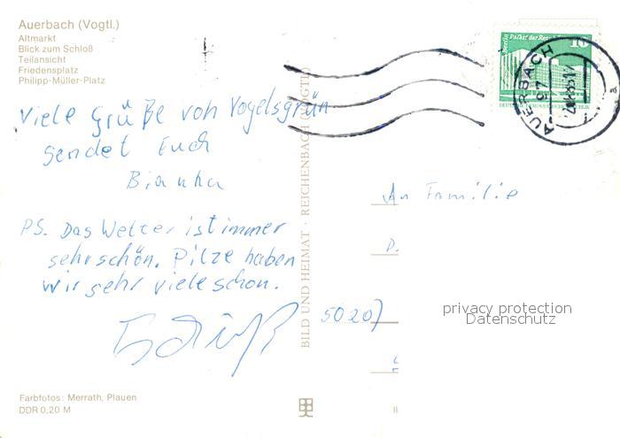 73065857 alte Postkarte Auerbach Vogtland Schloss Altmarkt postalisch gelaufen Erhaltung siehe scans [KathaD81] KatCode: 11110014178030