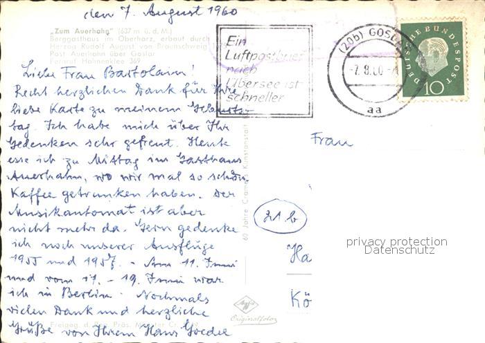 72130271 alte Postkarte Auerhahn Goslar Zum Auerhahn Berggasthaus postalisch gelaufen Erhaltung siehe scans KatCode: 11110003153005