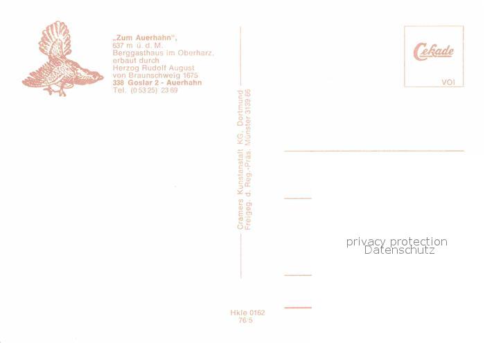 72690711 Auerhahn Goslar Zum Auerhahn Berggasthaus postalisch nicht gelaufen Erhaltung siehe scans [NatalD47] KatCode: 11110003153005