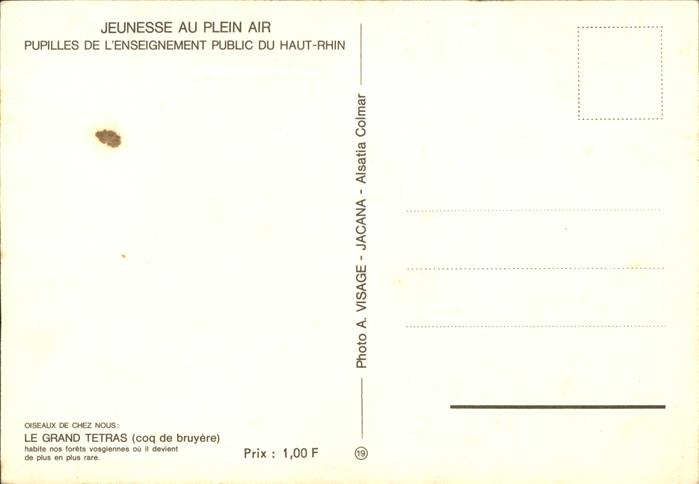71458789 Auerhahn Grand Tetras Haut-Rhin Jeunesse au Plein Air KatCode 22540000003700