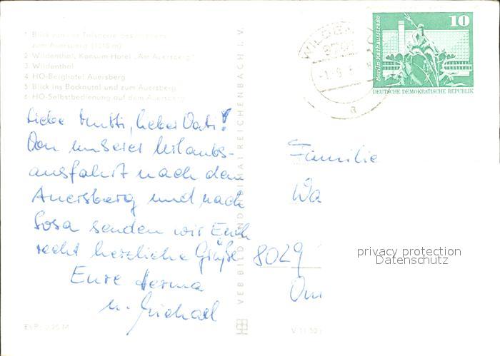 72388068 alte Postkarte Auersberg Wildenthal postalisch gelaufen Erhaltung siehe scans KatCode: 11110014191120