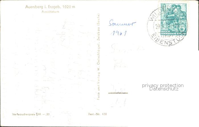 72385940 alte Postkarte Auersberg Wildenthal Aussichtsturm postalisch gelaufen Erhaltung siehe scans KatCode: 11110014191120