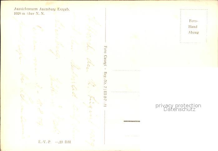 72430600 Auersberg Wildenthal Aussichtsturm Handabzug postalisch nicht gelaufen Erhaltung siehe scans KatCode: 11110014191120