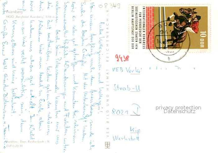 73088717 alte Postkarte Auersberg Wildenthal HOG Berghotel Auersberg postalisch gelaufen Erhaltung siehe scans [KathaD81] KatCode: 11110014191120