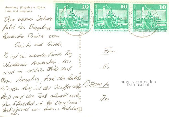 73162240 alte Postkarte Auersberg Wildenthal Turm Berghaus postalisch gelaufen Erhaltung siehe scans [FriedD77] KatCode: 11110014191120