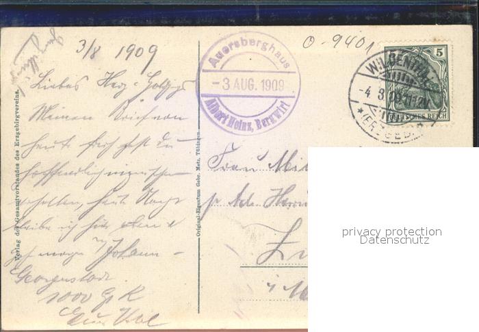 42263749 alte Postkarte Auersberg Wildenthal Unterkunftshaus und Aussichtsturm postalisch gelaufen Erhaltung siehe scans KatCode: 11110014191120