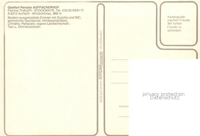 13221850 Auffach Gasthof Pension Auffacherhof postalisch nicht gelaufen Erhaltung siehe scans [FriedD77] KatCode: 11390335070530