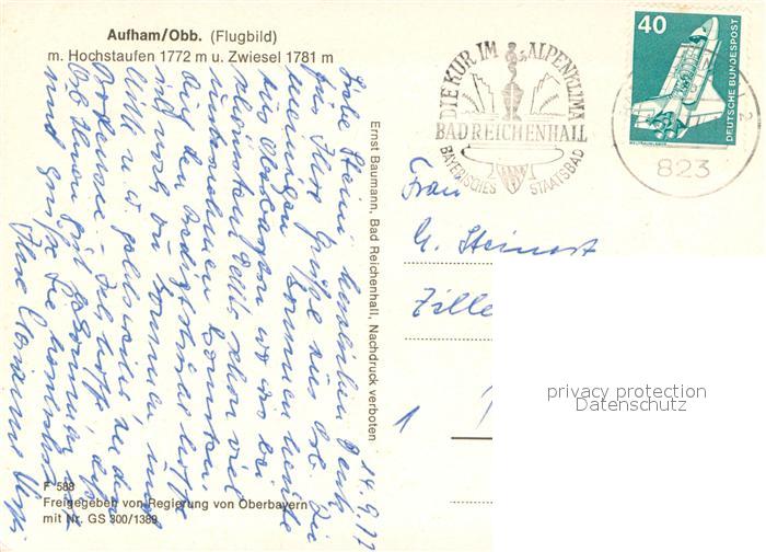 73724837 alte Postkarte Aufham Anger Fliegeraufnahme mit Hochstaufen und Zwiesel postalisch gelaufen Erhaltung siehe scans [WerneD78] KatCode: 11110009172112
