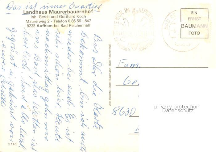 73171721 alte Postkarte Aufham Anger Landhaus Maurerbauernhof postalisch gelaufen Erhaltung siehe scans [NatalD47] KatCode: 11110009172112