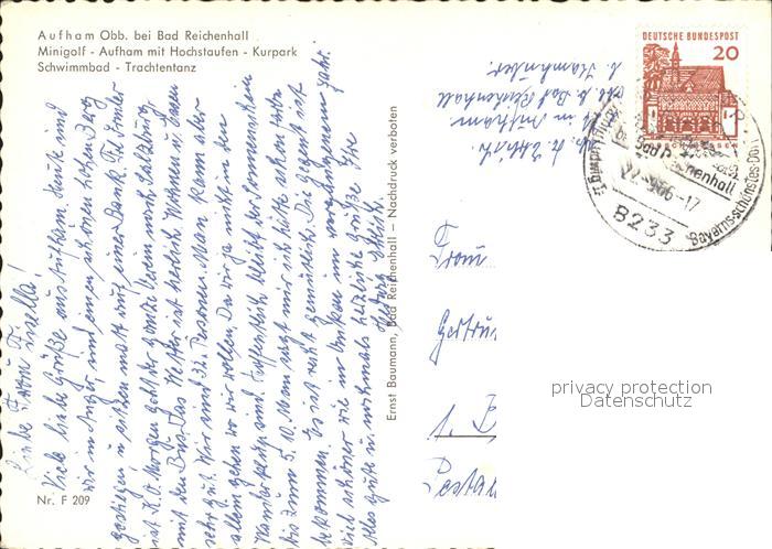72353537 alte Postkarte Aufham Anger Minigolf Hochstaufen Kurpark Schwimmbad Trachtentanz postalisch gelaufen Erhaltung siehe scans KatCode: 11110009172112