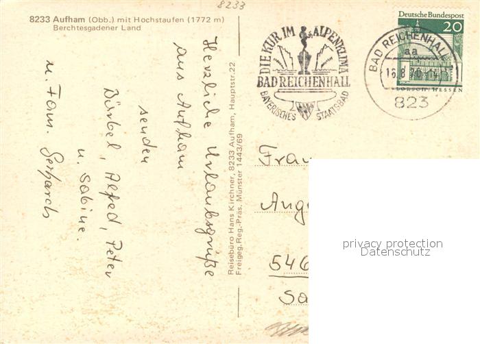 73721380 alte Postkarte Aufham Anger mit Hochstaufen Berchtesgadener Land Alpen postalisch gelaufen Fliegeraufnahme Erhaltung siehe scans [FriedD77] KatCode: 11110009172112