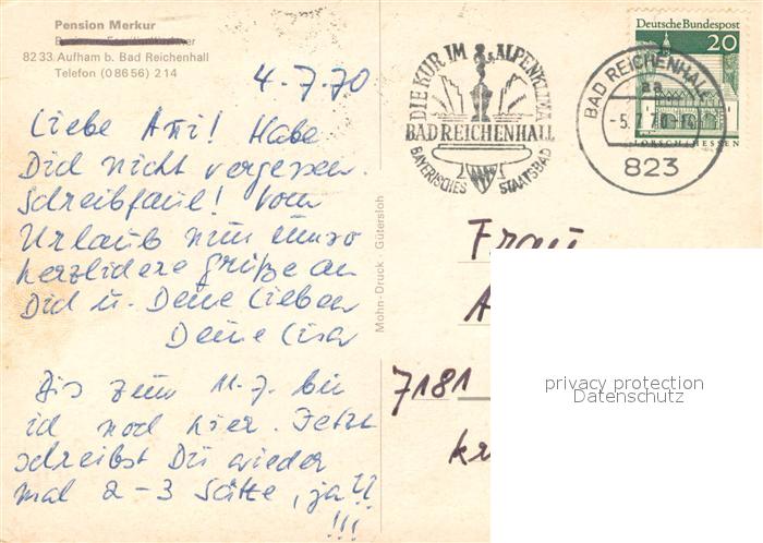 73716942 alte Postkarte Aufham Anger Pension Merkur Aussenansicht postalisch gelaufen Erhaltung siehe scans [LiesaD40] KatCode: 11110009172112