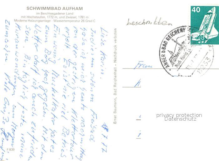 72959961 alte Postkarte Aufham Anger Schwimmbad postalisch gelaufen Erhaltung siehe scans [WerneD78] KatCode: 11110009172112