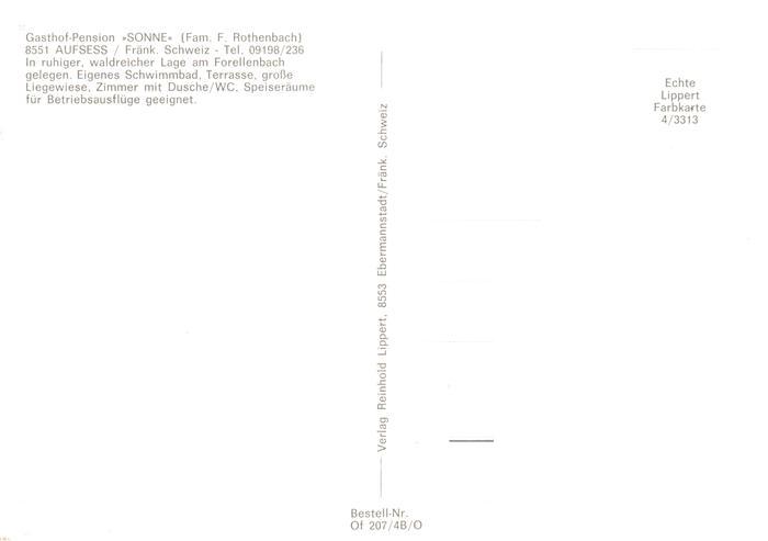 73896405 Aufsess Gasthof Rothenbach Park Freiterrasse Gastraum Gasthof Sonne postalisch nicht gelaufen Erhaltung siehe scans [WerneD78] KatCode: 11110009472115