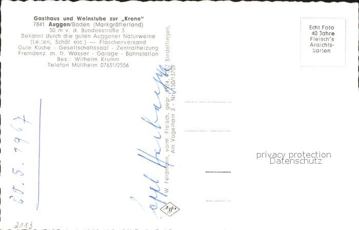 71906586 Auggen Gasthaus Weinstube zur Krone postalisch nicht gelaufen Erhaltung siehe scans KatCode: 11110008315004