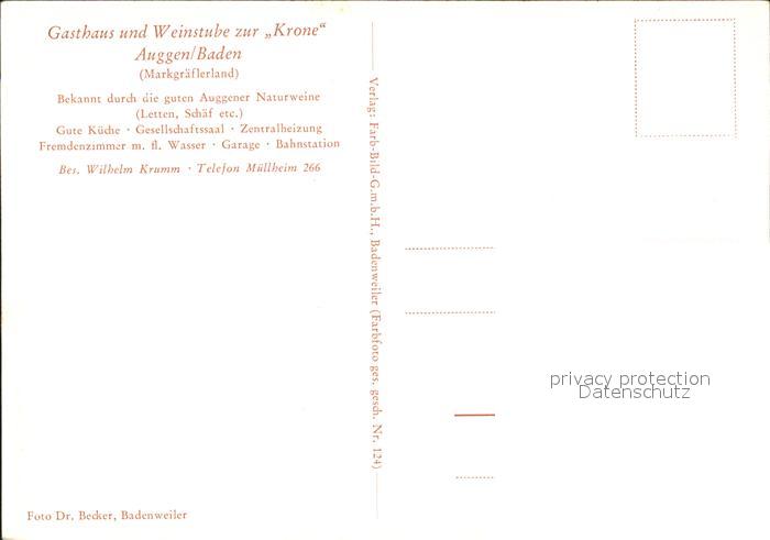 31850080 Auggen Gasthaus zur Krone Weinstube postalisch nicht gelaufen Erhaltung siehe scans KatCode: 11110008315004