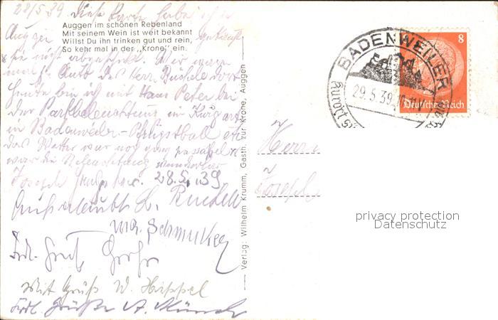 31910286 alte Postkarte Auggen Gedicht postalisch gelaufen Erhaltung siehe scans KatCode: 11110008315004