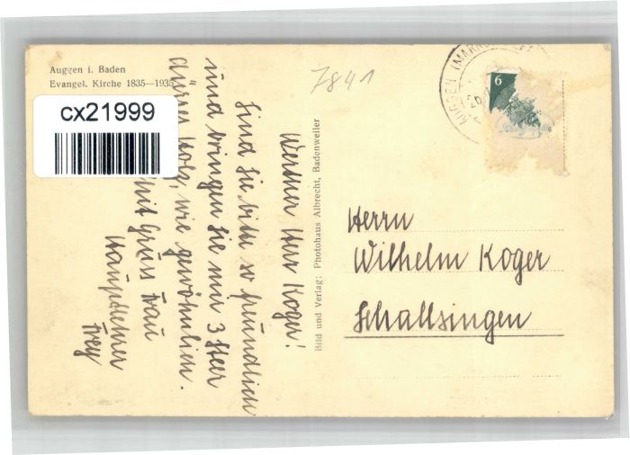 30739348 alte Postkarte Auggen Kirche postalisch gelaufen KatCode: 11110008315004