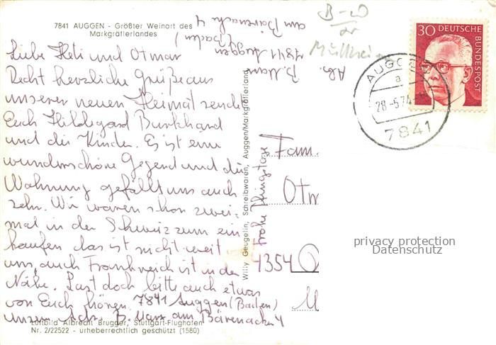 34143606 alte Postkarte Auggen Panorama Schwarzwald postalisch gelaufen Fliegeraufnahme Erhaltung siehe scans [FriedD77] KatCode: 11110008315004