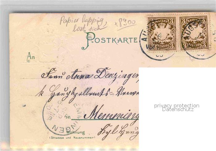 42731659 alte Postkarte Augsburg postalisch gelaufen Erhaltung siehe scans [NatalD47] KatCode: 11110009761000