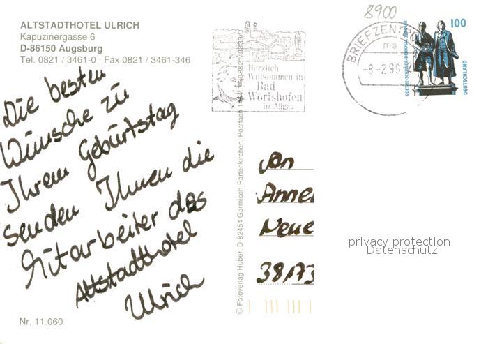 72955851 alte Postkarte Augsburg Altstadthotel Ulrich postalisch gelaufen Erhaltung siehe scans [FriedD77] KatCode: 11110009761000