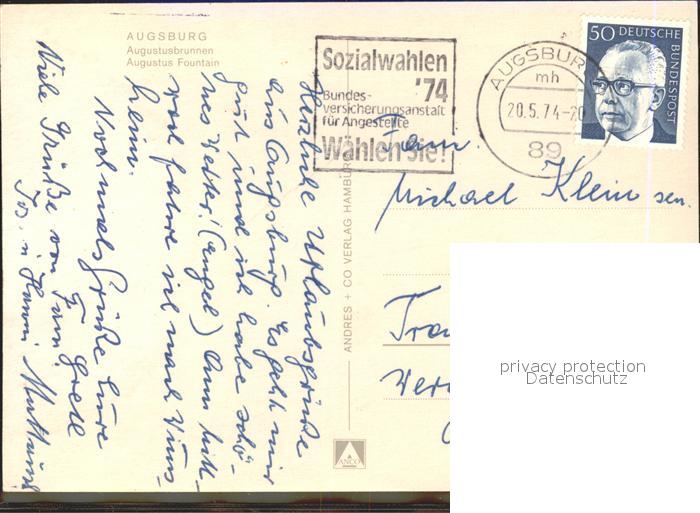 71848625 alte Postkarte Augsburg Augustusbrunnen postalisch gelaufen Erhaltung siehe scans KatCode: 11110009761000