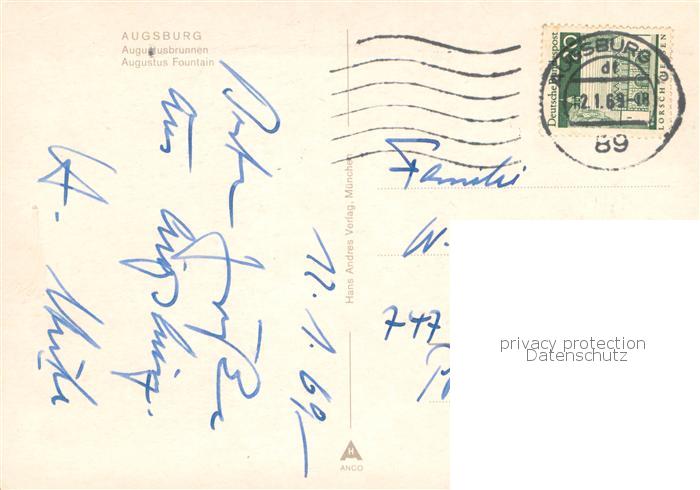 73776075 alte Postkarte Augsburg Augustusbrunnen postalisch gelaufen Erhaltung siehe scans [WerneD78] KatCode: 11110009761000
