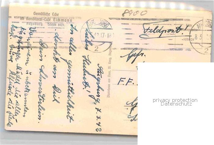 42722784 alte Postkarte Augsburg Cafe Eickmann postalisch gelaufen Feldpost Erhaltung siehe scans [KathaD79] KatCode: 11110009761000
