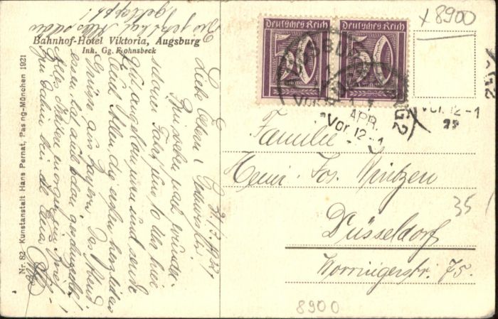 40819543 AUGSBURG CITY Bahnhofhotel Viktoria postalisch gelaufen Alte Ansichtskarte Postkarte alte Postkarte Katcode 11110009761000