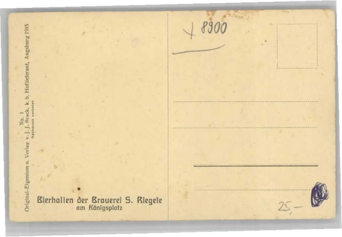 40641196 AUGSBURG CITY Bierhalle Brauerei S. Riegele Koenigsplatz postalisch nicht gelaufen Alte Ansichtskarte Postkarte Katcode 11110009761000