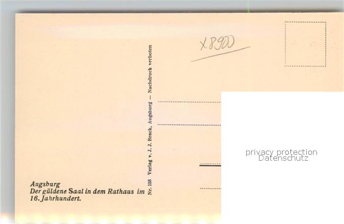 42958862 AUGSBURG CITY Der g?ldene Saal im Rathaus postalisch nicht gelaufen Erhaltung siehe scans [AndreD76] Andr Katcode 11110009761000