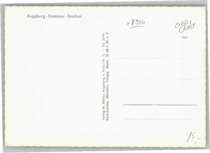 40641125 AUGSBURG CITY Fliegeraufnahme Rosenau Stadion postalisch nicht gelaufen Alte Ansichtskarte Postkarte Katcode 11110009761000