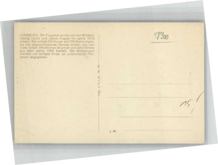 40640993 AUGSBURG CITY Fuggerei postalisch nicht gelaufen Alte Ansichtskarte Postkarte Katcode 11110009761000