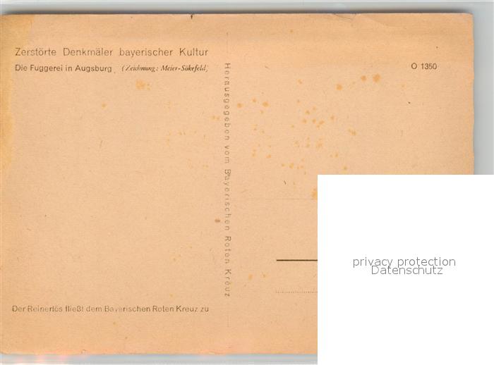 43497161 AUGSBURG CITY Fuggerei zerst?rte Denkm?ler der bayerischen Kultur postalisch nicht gelaufen Erhaltung siehe scans [LiesaD40] Lies Katcode 11110009761000