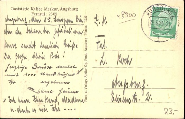 40819270 AUGSBURG CITY Gaststaette Cafe Merkur postalisch gelaufen Alte Ansichtskarte Postkarte alte Postkarte Katcode 11110009761000