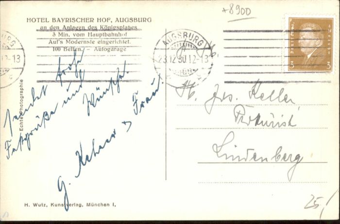 40819378 AUGSBURG CITY Hotel Bayrischer Hof postalisch gelaufen Alte Ansichtskarte Postkarte alte Postkarte Katcode 11110009761000