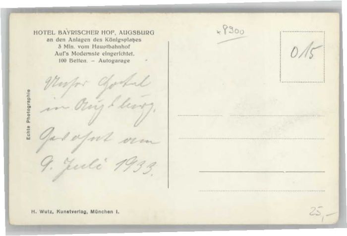 40641055 AUGSBURG CITY Hotel Bayrischer Hof postalisch nicht gelaufen Alte Ansichtskarte Postkarte Katcode 11110009761000