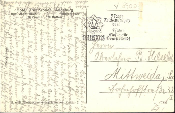40819297 AUGSBURG CITY Hotel Drei Kronen postalisch gelaufen Alte Ansichtskarte Postkarte alte Postkarte Katcode 11110009761000