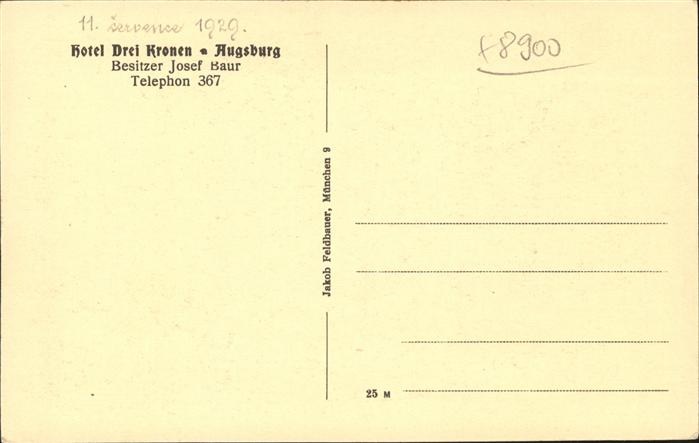 40982857 AUGSBURG CITY Hotel Drei Kronen postalisch nicht gelaufen Alte Ansichtskarte Postkarte Katcode 11110009761000