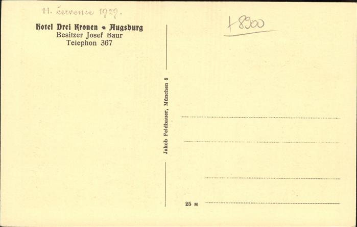 40982849 AUGSBURG CITY Hotel Drei Kronen postalisch nicht gelaufen Alte Ansichtskarte Postkarte Katcode 11110009761000